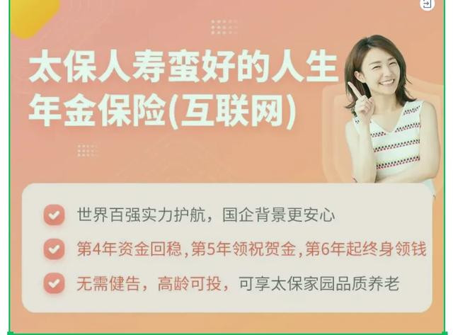 大家对这个电视剧感兴趣的伙伴可以去央视观看,今天我们要为大家介绍的是电视剧同名产品太保人寿蛮好的人生年金保险(互联网)。
