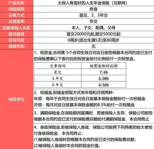总之,太保蛮好的人生年金保险(互联网)从收益、增速、灵活性、投保宽松度、承保公司上来说,都是非常优秀的一款产品,千万不要错过!