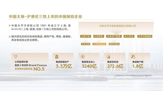 中国太平洋人寿保险股份有限公司(以下简称“太平洋寿险”)成立于2001年11月,是中国太平洋保险(集团)股份有限公司(以下简称“太平洋保险”)旗下专业寿险子公司。太平洋保险是在1991年5月13日成立的中国太平洋保险公司基础上组建而成的保险集团公司,是国内领先的综合性保险集团,并是A+H+G(上海、香港、伦敦)三地上市的保险公司。